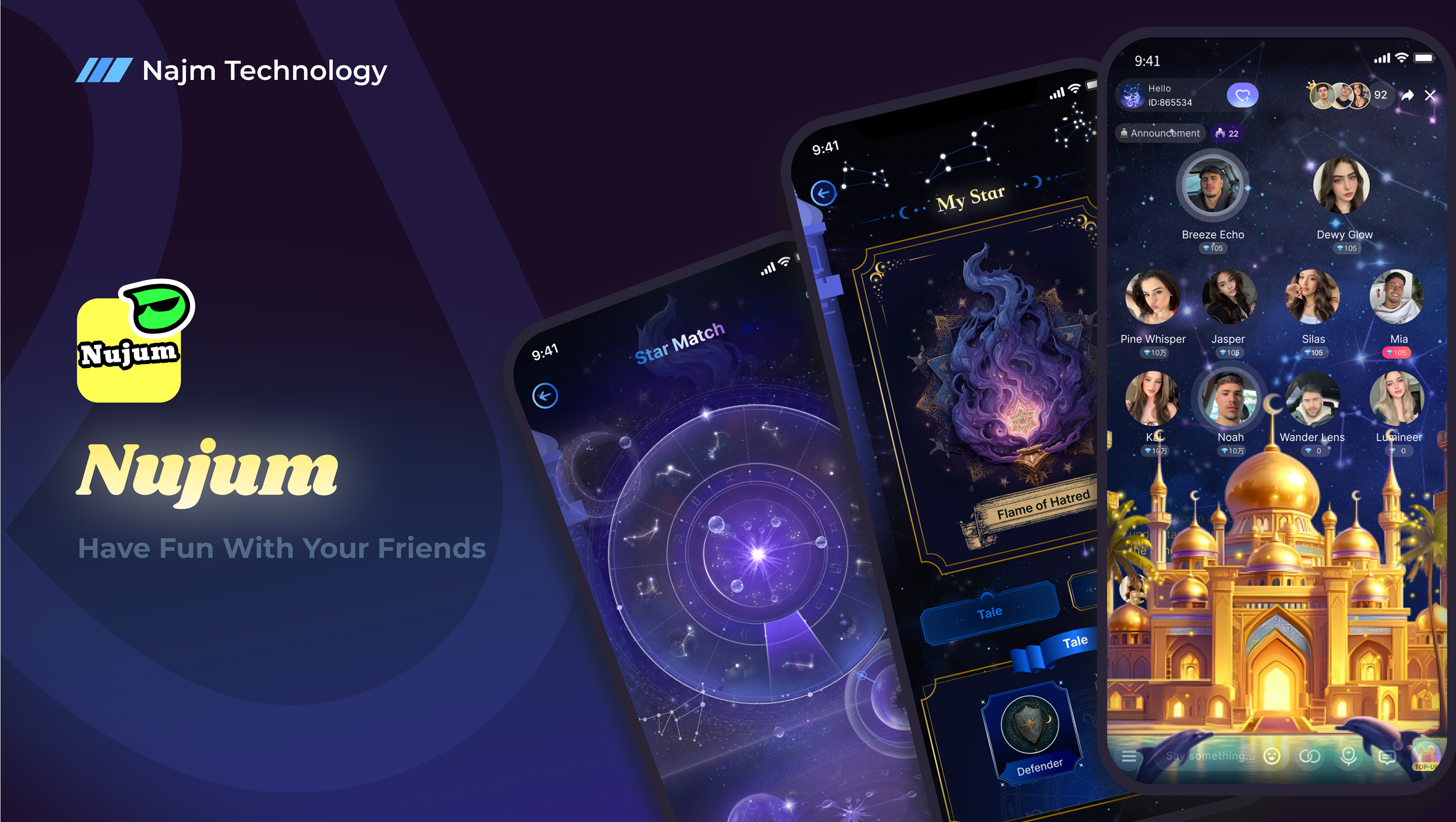 Najm Technology is a digital entertainment technology company deeply rooted in the Middle Eastern market. With the vision of "building a leading gaming and social services ecosystem in the Middle East," the company is committed to becoming the most beloved digital entertainment brand among Middle Eastern users through localized operations and technological innovation.